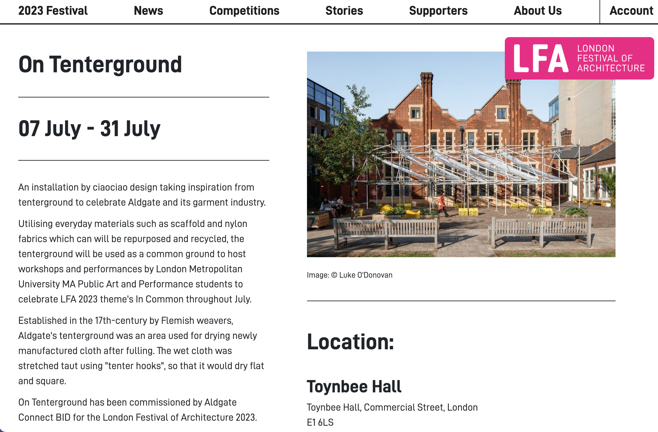 Collaboration between London Met’s MA cohort, Public Art and Performance, and Aldgate Connect for the 2023 London Festival of Architecture.